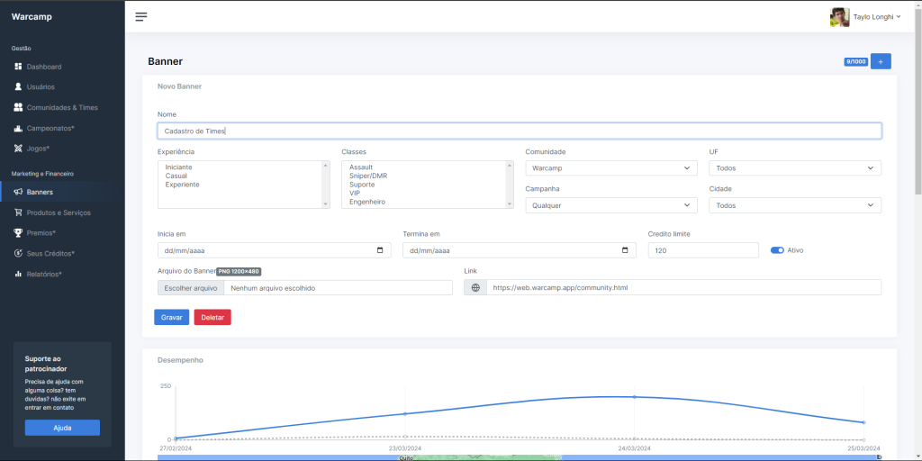 Foi Desenvolvido um recurso para que nossos parceiros possa adicionar seus próprios banners com sistema de métricas bem completo, vc pode definir o perfil do seu publico, exemplo:’ Sniper que esteja em todo estado de São Paulo‘. restringindo acesso por região ou classe do operador.